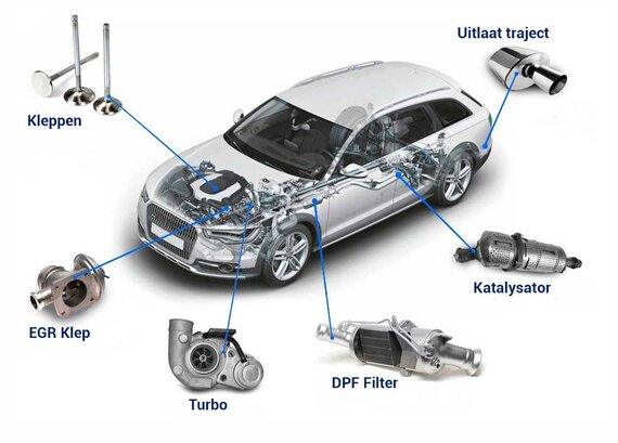 Daarnaast kan onze Carbon Cleaning ook vele andere vervuilings gerelateerde problemen oplossen, denk aan stotteren, inhouden, niet goed reageren op het gaspedaal, of bv: EGR-problemen.